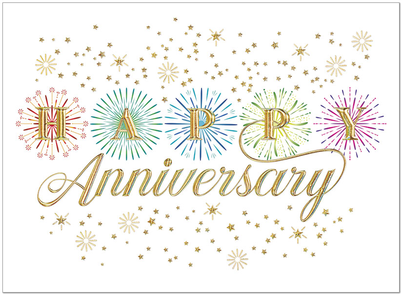 Send anniversary wishes with this elegant firework design featuring gold foil embossing. Printed on matte FSC® paper.