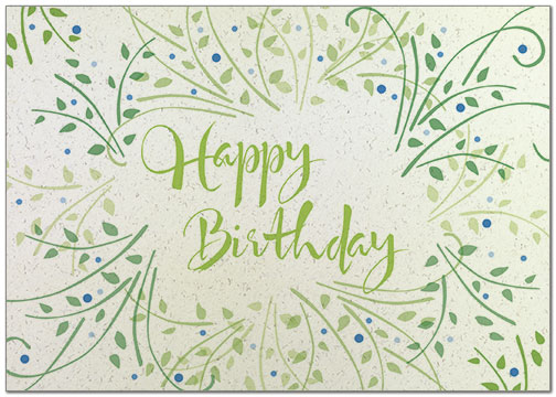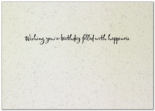 A simple, organic birthday card printed with soy ink on 30% recycled, FSC® certified matte paper with a fibrous texture.