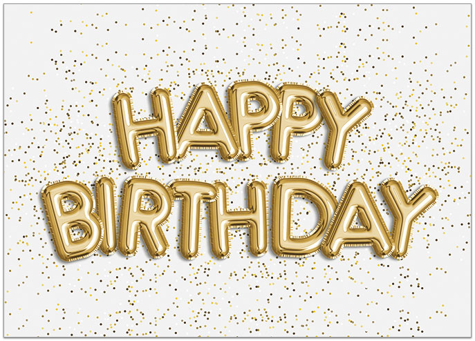 Send birthday wishes with this design featuring gold balloons and confetti. Printed on matte FSC® paper.