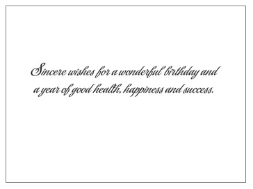 Interior Text: Sincere wishes for a wonderful birthday and a year of good health, Happiness and success.