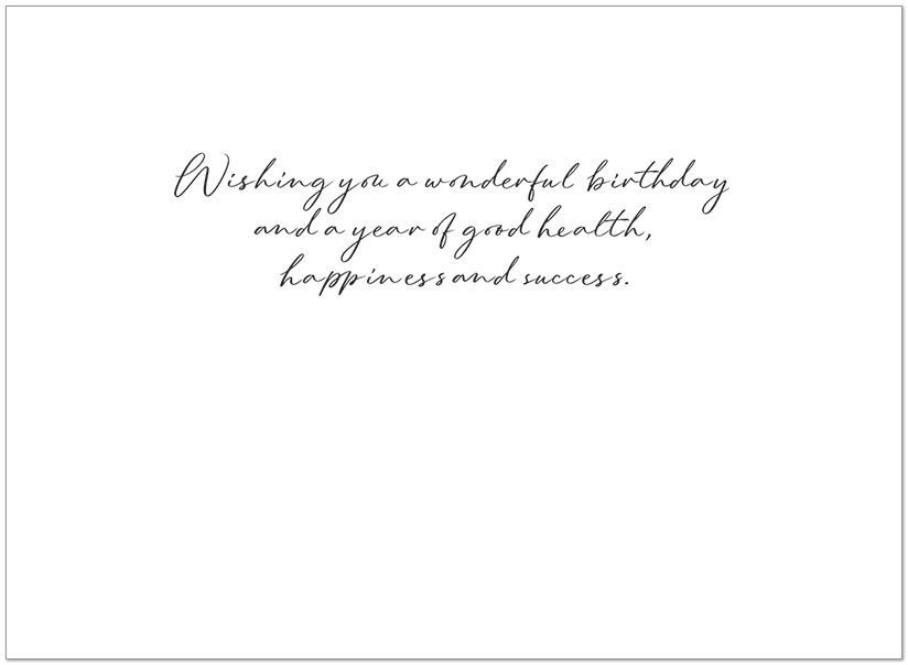 Interior Text: Wishing you a wonderful birthday and a year of good health, happiness and success.