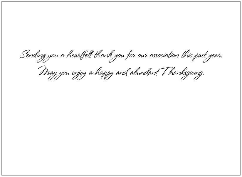 Interior Text: Sending you a heartfelt thank you for our association this past year. May you enjoy a happy and abundant Thanksgiving.