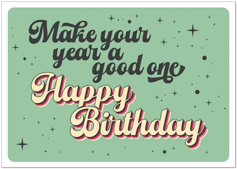 A birthday card with a cheerful retro design printed with soy-based ink on 100% recycled FSC® paper.
