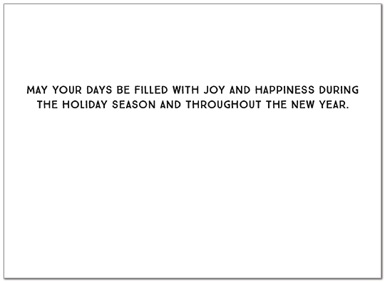Interior Text: May your days be filled with joy and happiness during the holiday season and throughout the New Year.