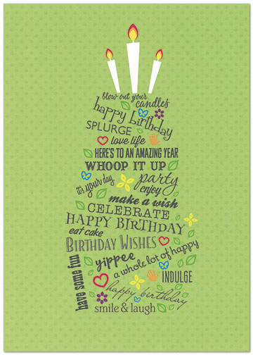 This fun birthday cake offers lots of birthday wishes. Printed with soy ink on 100% recycled, FSC® certified paper.