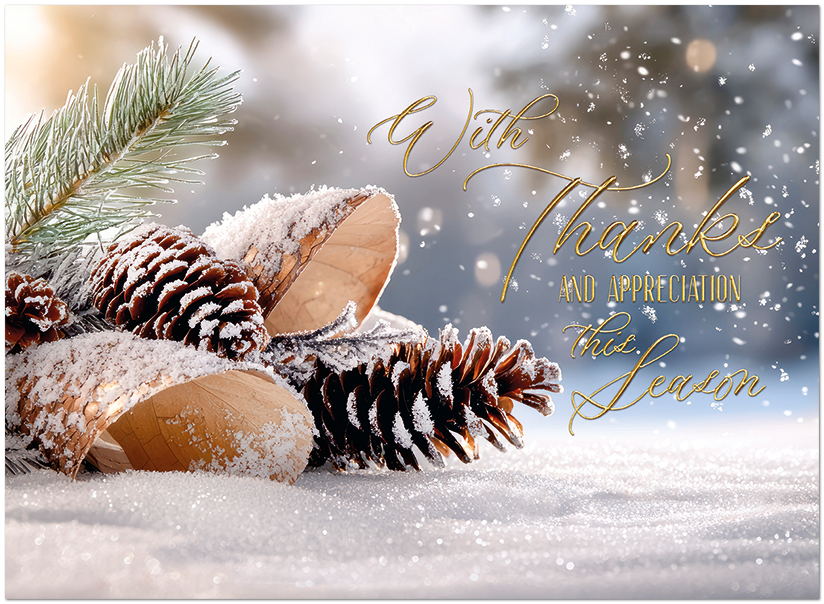 This festive card shows your appreciative and thankful sentiments. It features gold foil embossing on matte FSC® paper.